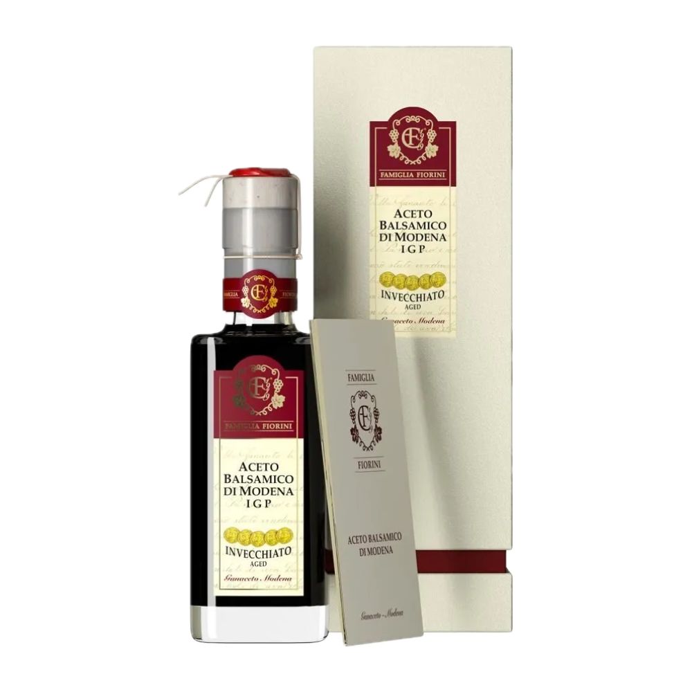 Il nostro Aceto Balsamico di Modena IGP 5 Fiorini è invecchiato minimo 3 anni in botti di legno. Il lento invecchiamento conferisce al prodotto sapori e profumi unici. Il packaging è elegante e raffinato: ogni bottiglia è chiusa a mano con spago e ceralacca come vuole la tradizione.