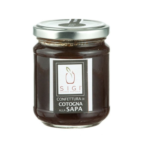 Nel settembre 1996 Silvano, tecnico dell’Istituto Agrario di Macerata decide di lasciare il suo posto di lavoro statale per inseguire un sogno ambizioso: recuperare frutti antiche e ricette di una volta che piano piano stavano scomparendo dalla memoria di tutti i ragazzi a cui insegnava. Nelle campagne maceratesi sempre più di rado si vedevano piante di gelso nero, visciola, giuggiola, fico bianco, alberi che avevano contraddistinto la giovinezza di Silvano e su cui tante volte si era arrampicato per coglierne i frutti. Insieme a sua moglie Giuliana, da sempre appassionata custode di antiche ricette della mamma e della nonna, decidono di ripiantare quei frutti che tanto caratterizzavano il territorio e di creare il primo laboratorio per proporre le confetture e le salse a tutti quei ragazzi che non avevano avuto la possibilità di assaggiarli e a tutte le persone che volevano riassaporare il gusto della loro selvaggia giovinezza. Dall’unione di Silvano e Giuliana nasce SIGI, acronimo dei loro nomi, del loro amore e della passione in comune per le cose buone, sane e fatte bene. Ricetta originale tipica maceratese, dalla consistenza densa e morbida che rivela i sottili granelli caratteristici della cotogna. Il profumo scopre un primo sentore di vino cotto, dolce al palato, per lasciare poi il retrogusto leggermente aspro della cotogna. Perfetta come accompagnamento al cappone bollito o, come insolito abbinamento, su stuzzichini di polenta.
