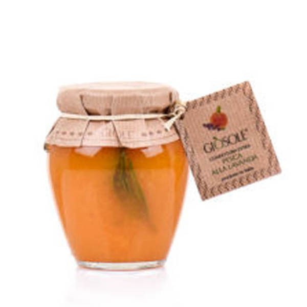 Frutteti, orto e spazi incontaminati sono l’anima della Masseria, ne caratterizzano il paesaggio e l’estetica e sono protagonisti assoluti di ogni attività, dalla cucina alla trasformazione. Dalle classiche primizie d’inverno all’uva che saluta l’arrivo dell’autunno, dagli alberi in fiore in primavera alle bontà estive dell’orto, da Giòsole la natura non smette mai di manifestarsi nel suo massimo splendore. Pesche, zucchero, succo di limone, acido ascorbico, lavanda. Frutta utilizzata 75 g e 3 g lavanda per 100 g di prodotto finito.