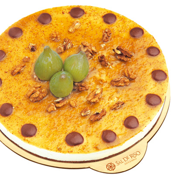 Biscotto alle noci e cacao, crema ai fichi bianchi e cioccolato.