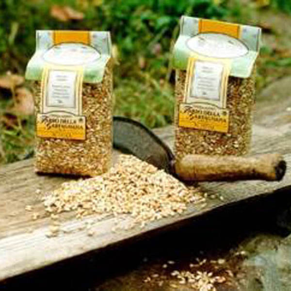 Il più antico cereale che si conosca, viene coltivato ancora oggi con metodi tradizionali, che sfruttando l’eccezionale capacità di adattamento di questa pianta, non prevedono l’impiego di alcun prodotto chimico. Il farro (Triticum dicoccon Schrank) è una graminacea, dal fusto eretto e resistente e dalla foglia lineare, che cresce nelle zone di montagna. Si distingue dai classici frumenti coltivati perché mantiene le cariossidi vestite (ricoperte dalle glume e glumette) a fine trebbiatura. Per l’eliminazione degli involucri esterni è necessaria una successiva “svestitura”, (brillatura) inconveniente che, insieme alle basse rese, ha nel tempo provocato il quasi abbandono della coltura, proseguita solo in aree marginali.
