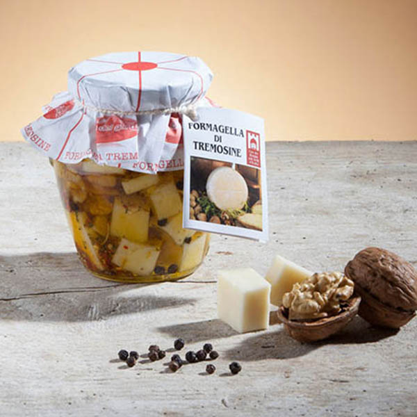 La tipica Formagella Tremosine viene accuratamente tagliata in cubetti di dimensioni adeguate, messa in vasetti di vetro con aggiunta di spezie e ricoperta interamente con olio extra vergine d’oliva del Lago di Garda. Qui riposa per alcuni giorni in modo che il gusto del formaggio si amalgami con quello delle spezie e venga impreziosito ulteriormente dai sentori dell’olio del Garda. Questo prodotto è ideale per sfiziosi antipasti o aperitivi all’insegna della tradizione.