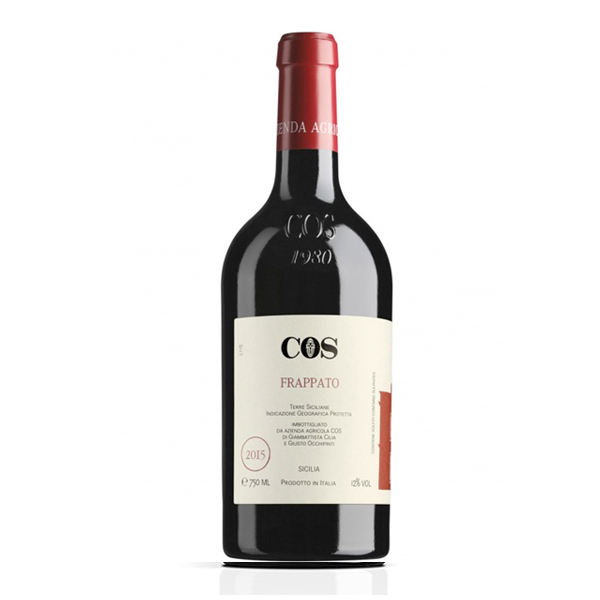 Vitigni: Frappato di Vittoria 100%. Colore: Alla vista ha un bel colore rosso rubino, brillante e luminoso. Profumo: lo spettro olfattivo si struttura attorno a profumi eleganti e raffinati: frutti rossi, rose essiccate e mandorla sono gli aromi immediatamente identificabili. Gusto: di medio corpo, con un tannino setoso, perfettamente equilibrato. Abbinamenti: a tutto pasto, il Frappato di COS è ideale per accompagnare una tartare di manzo ben condita con spezie mediterranee.