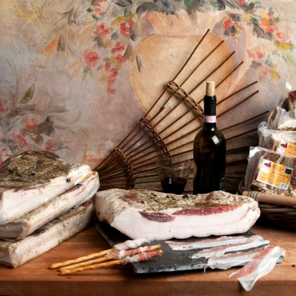 Il lardo si caratterizza per una lavorazione artigianale molto accurata: si seziona il lardo dalla spalla di suini biologici dal peso  non inferiore ai 180kg e di eta’ di circa 1 anno. Si tagliano poi “teli” lunghi circa 60 cm e li si pongono in grosse vasche sopra uno strato di sale marino, pepe, spezie e aromi vari (aglio, rosmarino) provenienti da aziende biologiche che certificano inoltre l’assenza di Ogm, di glutine, di derivati del latte e di allergeni. Si alternano strati di lardo con strati di sale e  spezie  finché la vasca è piena. Si chiude con un coperchio e si lascia riposare per qualche mese, dopodiché può essere consumato.