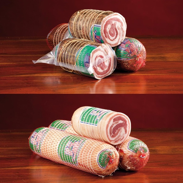 Prodotto di forma cilindrica di pancetta di suino con aggiunta di aromi e spezie; la forma caratteristica viene ottenuta con arrotolatura, legatura ed insacco in budello Fibrous. Il prodotto viene stagionato per almeno 120 giorni. Al taglio spire di parti magre rosso carico e bianche di grasso. Gradevole e caratteristico.