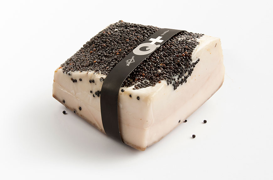 Salumificio Pedrazzoli è un’azienda a ciclo chiuso: allevamento, macellazione e trasformazione sono tutte attività realmente integrate e connesse con il territorio e la natura, con le persone e le loro competenze che fanno da sempre la nostra forza. Tutti i nostri prodotti provengono da suini 100% italiani allevati liberi in zone limitrofe all’azienda. Ciò significa che da un lato possiamo garantire una produzione a km zero più rispettosa dell’ambiente e dall’altro che nei nostri allevamenti freerange il benessere del suino (cresciuto libero e nutrito naturalmente) sta davvero al centro della nostra filosofia di allevamento. Qualcosa in più sul nostro Quattro case – il Lardo al pepe nero della Linea Q+. La storia del Quattro Case – Il Lardo della linea Q+ – è frutto di un’antica tradizione e si caratterizza dall’utilizzo di tutte le parti del maiale, da uno spessore sostenuto (almeno 5 centimetri) e da una lunga stagionatura. La preparazione del lardo comincia dividendo un taglio di grasso di maiale in parallelepipedi che poi andranno massaggiati con sale marino. Questi pezzi di lardo verranno quindi messi a stagionare in “conche” con coperchio, riposti uno sull’altro a strati e immersi in una mistura naturale: sale marino in grani, pepe nero appena macinato, aglio fresco sbucciato, rosmarino e salvia spezzettati. Dopo sei mesi il lardo è pronto con le sue caratteristiche fette bianchissime, morbide, profumate e -soprattutto- straordinariamente dolci e delicate. Per conservare il lardo dopo il taglio, è buona abitudine ripiegare la “lingua” della cotenna avanzata sul corpo del lardo e lasciare che il pezzo di lardo rimanga coperto dal suo sale, quindi avvolgerlo in un panno che dovrà essere sempre leggermente umido. Mantenere in cantina o locale fresco. In alternativa, si può conservare nel ripiano inferiore del frigorifero.