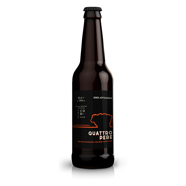 Birra scura di ispirazione belga arricchita, con creatività, dalle Pere Martin Sec, prodotto tradizionale piemontese (PAT), selezionate per noi da COBI Farm di Torino. La frutta, sminuzzata e cotta, viene aggiunta in quantità elevate, circa 80 grammi ogni 33 cl di birra finita, a metà fermentazione, riaccendendo così l’attività dei lieviti e donando alla birra una secchezza finale elevata. Le pere imprimono anche un carattere “sour” che smorza la dolcezza del prodotto rendendolo meno stucchevole. Oltre ai malti base utilizziamo lo Special B e lo zucchero candito scuro per intensificare profumi e aromi. Il lievito belga completa il profilo della nostra quadrupel.